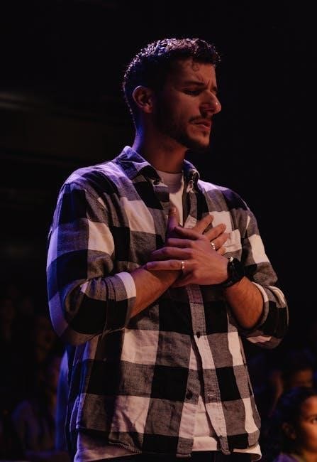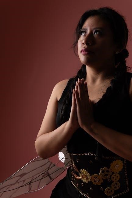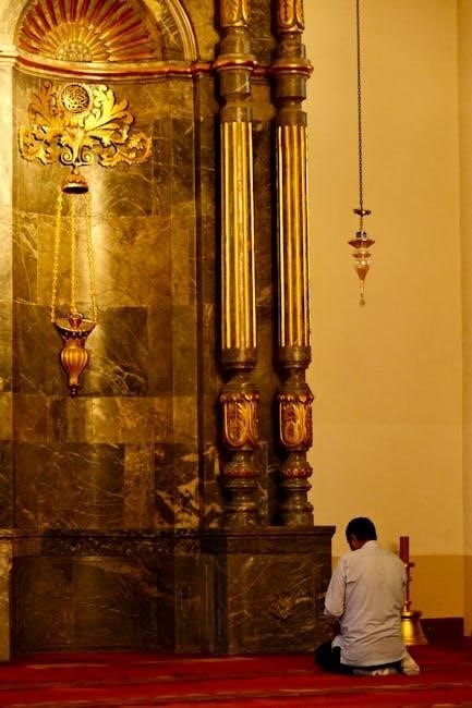 Sitting upright and maintaining a relaxed posture is crucial for effective prayer. This physical stance promotes focus and reduces distractions, allowing you to engage deeply with the Psalms. A straight yet comfortable position helps sustain concentration during extended prayer sessions. Avoid slouching, as it can lead to discomfort and mind-wandering. Instead, sit with your back straight, feet planted firmly on the ground, and hands placed gently on your lap or a prayer book. This posture reflects humility and readiness to connect with God. Many PDF guides recommend this approach to enhance your prayer experience, ensuring both physical and spiritual alignment as you pray through the Psalms.